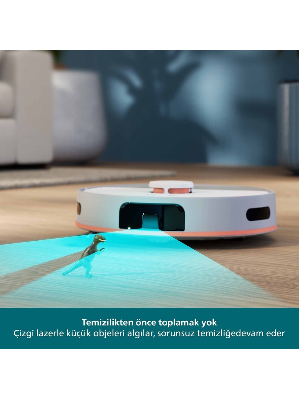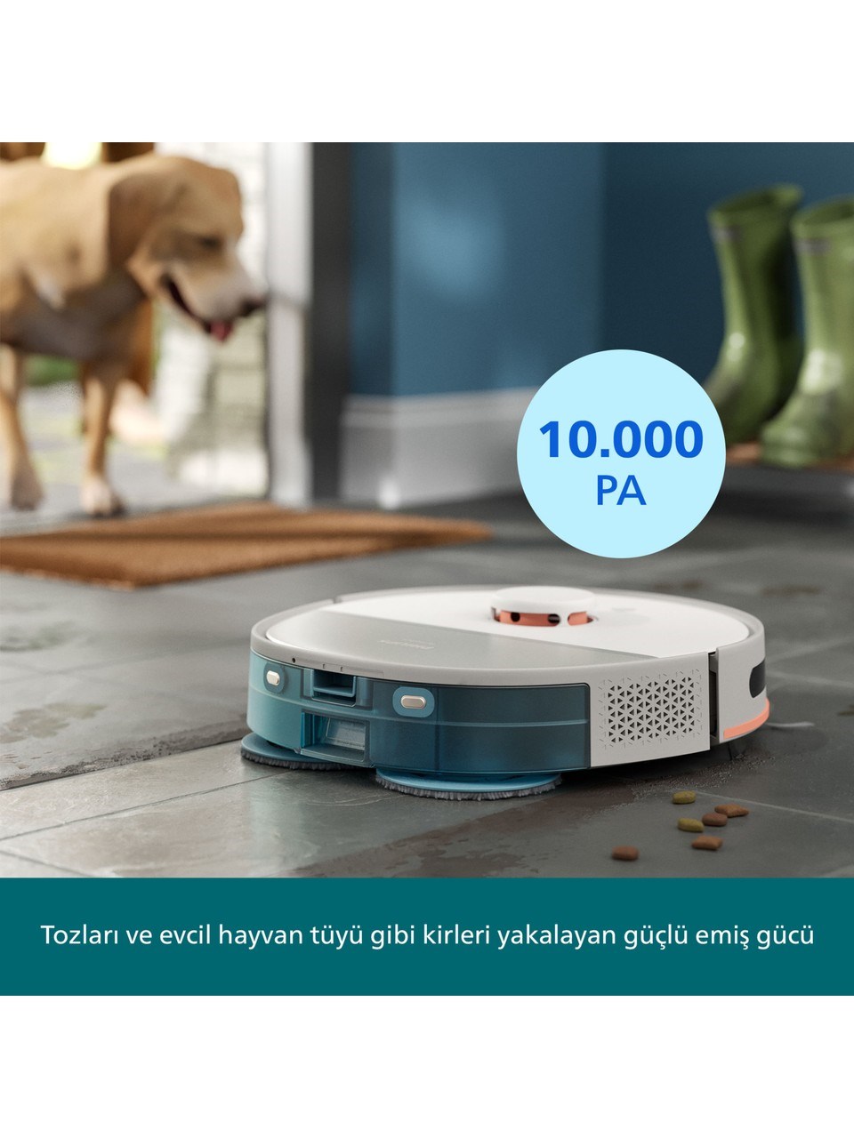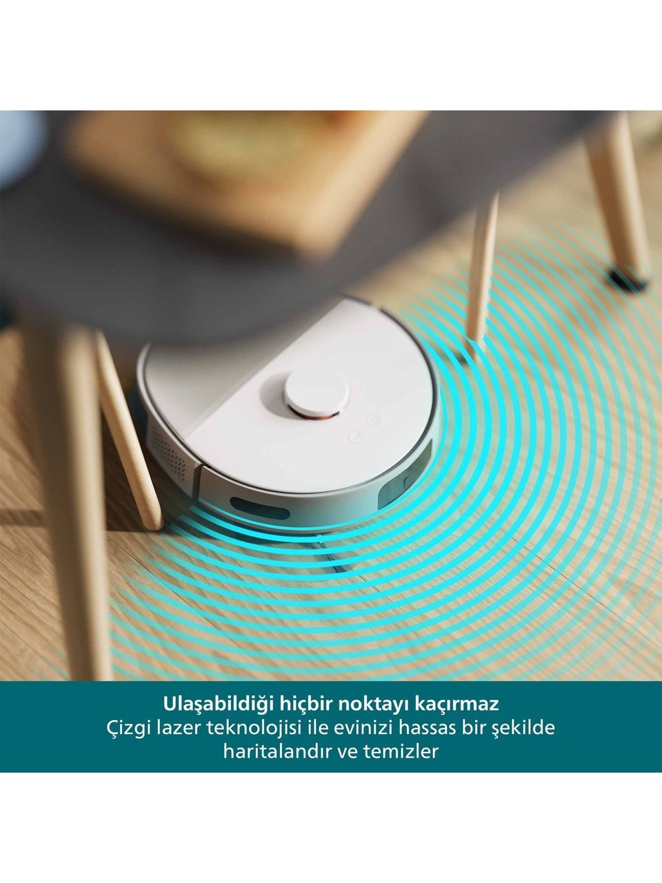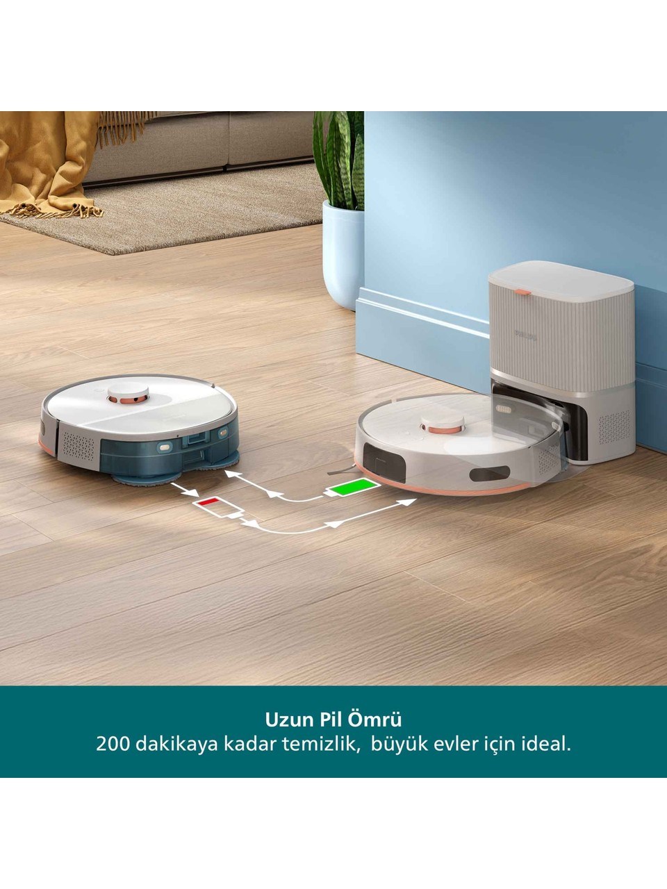 Philips HomeRun 5000 Islak ve Kuru Robot Süpürge, zahmetsiz ve etkili temizlik için en gelişmiş özelliklerle donatılmıştır. Çift dönüş teknolojisi sayesinde aynı anda süpürme ve silme yaparak hijyenik ve kusursuz sonuçlar elde etmenizi sağlar. 10.000 Pa’ya kadar çıkan güçlü emiş performansı, evcil hayvan tüyleri dahil olmak üzere görünmeyen kirleri bile ortadan kaldırır. Hassas sensörleri sayesinde mobilyaların etrafında, dar alanlarda ve halıların üzerinde sorunsuz hareket ederek evinizin her köşesini eksiksiz temizler. En büyük avantajlarından biri olan otomatik boşaltma istasyonu, 70 güne kadar toz haznesini boşaltma ihtiyacını ortadan kaldırır. Bu sayede temizlik sırasında hazne boşaltma derdi olmadan konforlu ve hijyenik kullanım sunar. 4800 mAh lityum iyon pil ile tek şarjda 200 dakikaya kadar kesintisiz çalışabilen cihaz, geniş alanlı evlerde bile tek seferde kapsamlı temizlik imkânı tanır. Saç dolanmasını önleyen özel fırça tasarımı, bakım gerekliliğini en aza indirir ve robotun sürekli yüksek performansla çalışmasını sağlar. Philips HomeRun uygulaması sayesinde temizlik planlarını kişiselleştirebilir, belirli odalara özel zamanlama yapabilir ve cihazı uzaktan kolayca kontrol edebilirsiniz. Sessiz çalışma teknolojisi sayesinde ev ortamında huzuru korurken güçlü temizlik performansını sürdürür. Hem sert zeminlerde hem de halılarda üstün performans sergileyen Philips HomeRun 5000, yalnızca bir temizlik robotu değil, yaşam kalitenizi yükselten akıllı bir yardımcıdır. Modern tasarımı, akıllı kontrol sistemi, güçlü emiş performansı ve otomatik boşaltma istasyonu ile evinizin temizlik rutinini bambaşka bir seviyeye taşır. Philips HomeRun 5000, hijyen, konfor ve zaman tasarrufunu bir arada sunarak günlük hayatınızı kolaylaştırır.